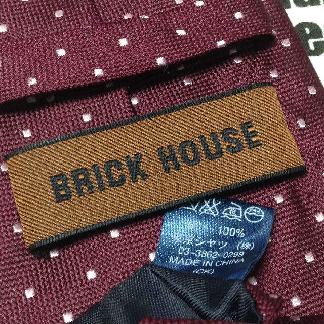 ブリックハウス BRICK HOUSE 美品 未使用品 微光沢 ネクタイ シルク100% ドット柄 ワインレッド系 赤系 M-007330