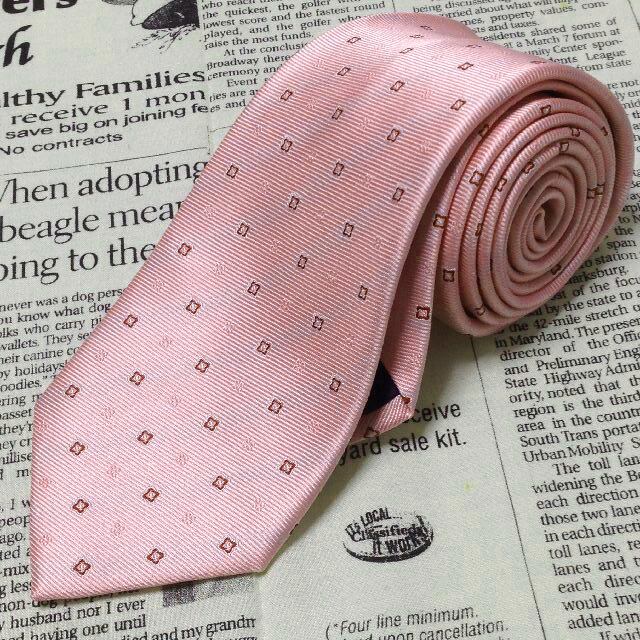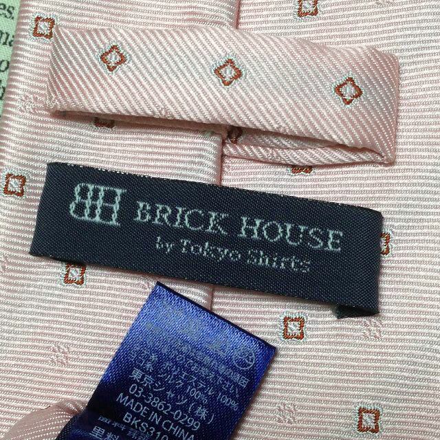 ブリックハウス BRICK HOUSE 美品 未使用品 微光沢 ネクタイ ポリエステル シルク パターン柄 ピンク系 M-007341