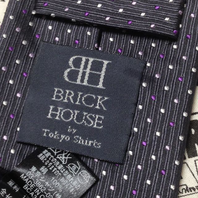 ブリックハウス BRICK HOUSE 良品 微光沢 ネクタイ シルク100% ドット柄 グレー系 M-007345