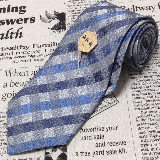 西陣織 美品 新品未使用タグ付 微光沢 ネクタイ 日本製 シルク100% チェック柄 ミックス M-007347