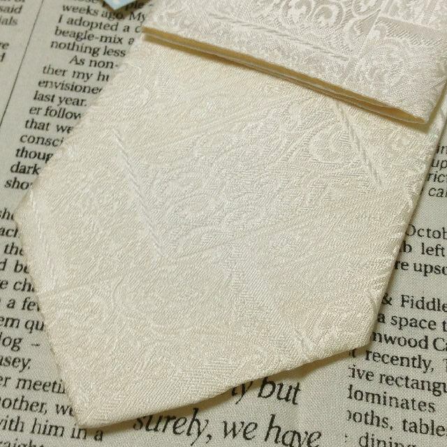 アオキ AOKI 美品 新品未使用タグ付 微光沢 ネクタイ 日本製 シルク100% 冠婚葬祭 白系 ホワイト系 M-007352