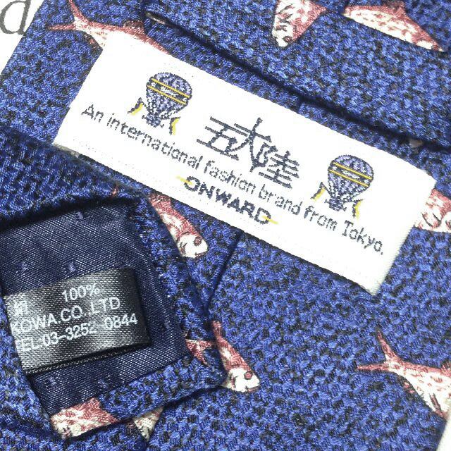 五大陸 gotairiku 微光沢 ネクタイ シルク100% 魚柄 フィッシュ 動物柄 アニマル 濃紺系 ネイビー系 M-007359