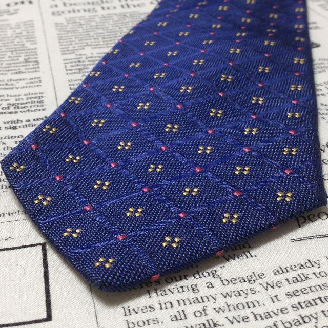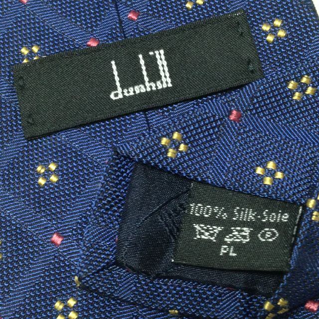 ダンヒル dunhill 微光沢 ネクタイ イギリス製 シルク100% パターン柄 濃紺系 ネイビー系 M-007364