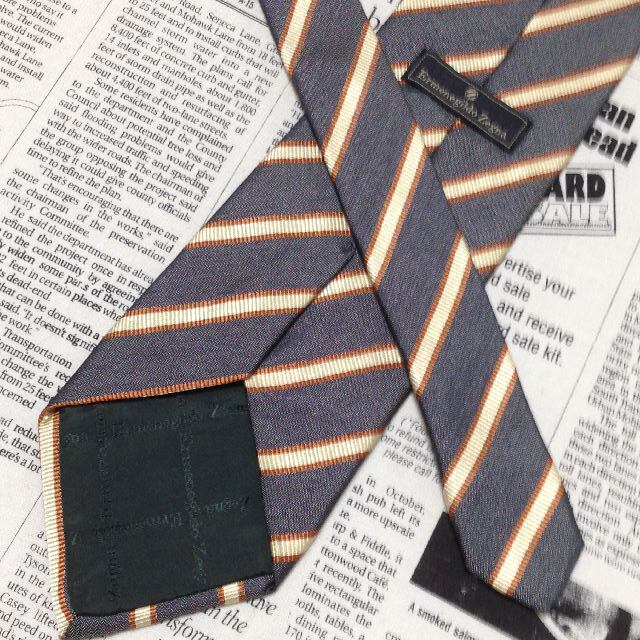 エルメネジルドゼニア Ermenegildo Zegna 美品 微光沢 ネクタイ 斜めストライプ レジメンタル ミックス M-007382