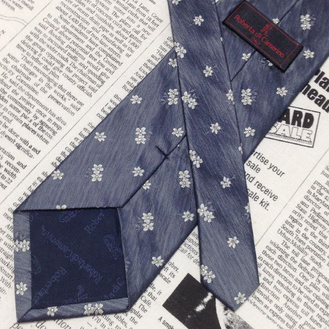 ロベルタ ディ カメリーノ ROBERTA DI CAMERINO 美品 未使用品 微光沢 ネクタイ シルク 小花柄 グレー系 M-007392