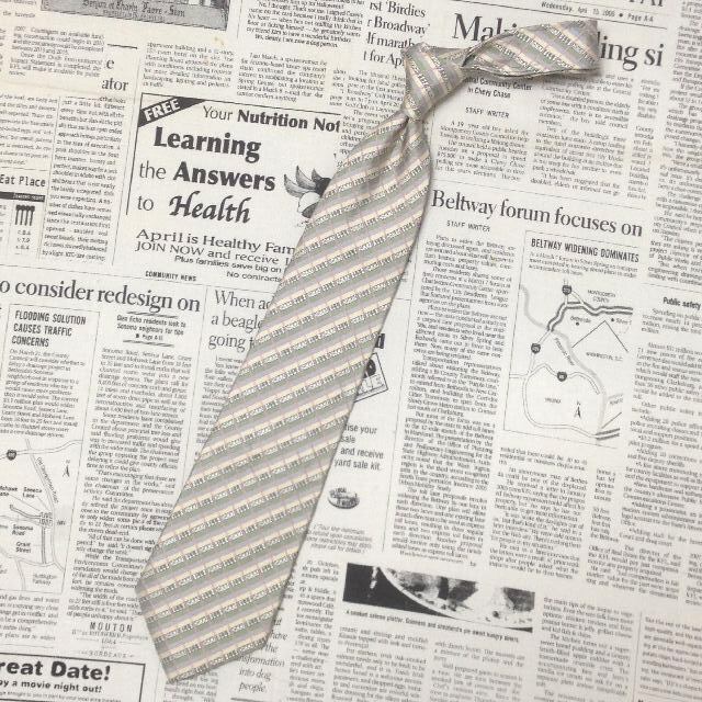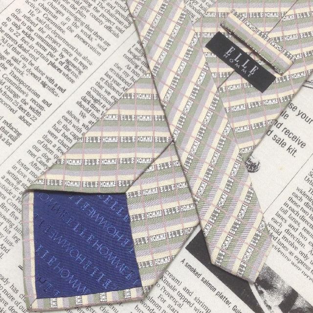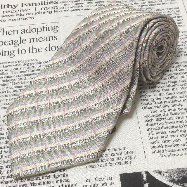 エル ELLE 美品 未使用品 微光沢 ネクタイ 日本製 シルク100% ブランド名柄 ミックス N-007398