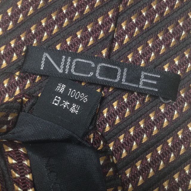 ニコル NICOLE 良品 微光沢 ネクタイ 日本製 シルク100% パターン柄 茶系 ブラウン系 N-007413