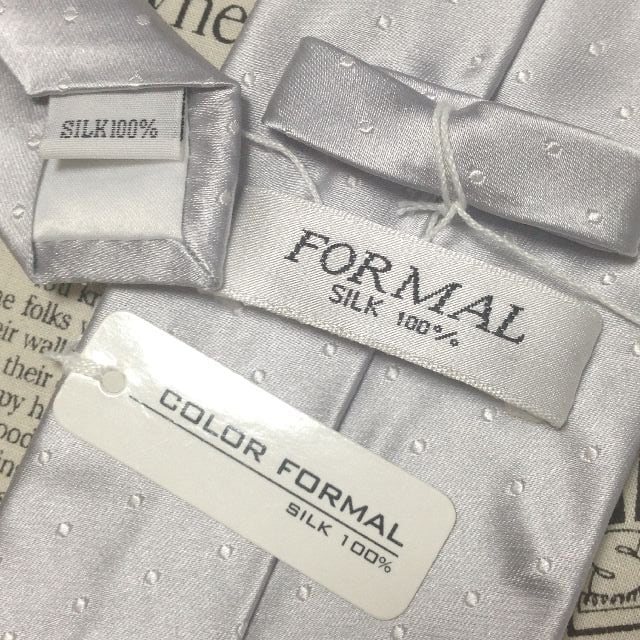 カラーフォーマル COLOR FORMAL 美品 新品未使用タグ付 微光沢 ネクタイ シルク100% ドット柄 グレー系 N-007425