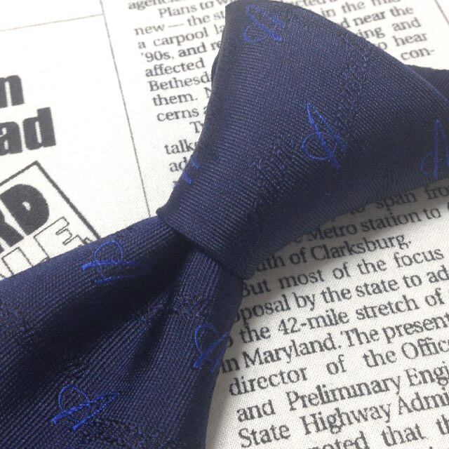 アクアスキュータム Aquascutum 美品 微光沢 ネクタイ シルク100% ブランドロゴ柄 濃紺系 ネイビー系 N-007428