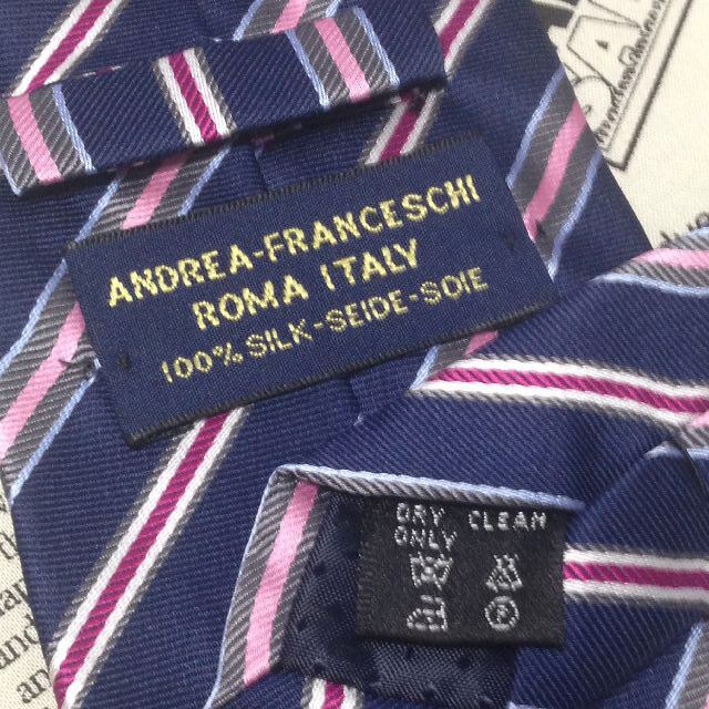 アンドレア フランチェスキ ローマ ANDREA FRANCESCHI ROMA ITALY 微光沢 ネクタイ 斜めストライプ N-007436