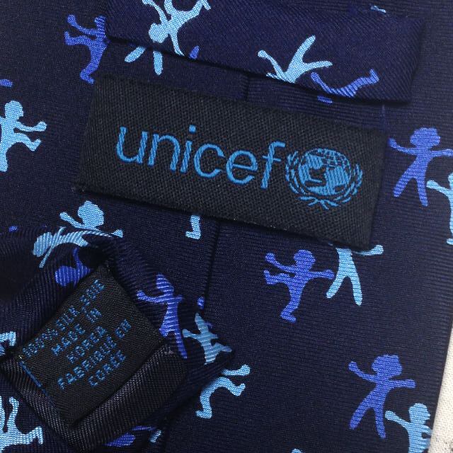 ユニセフ UNICEF 微光沢 ネクタイ シルク100% シルエット柄 濃紺系 ネイビー系 N-007437