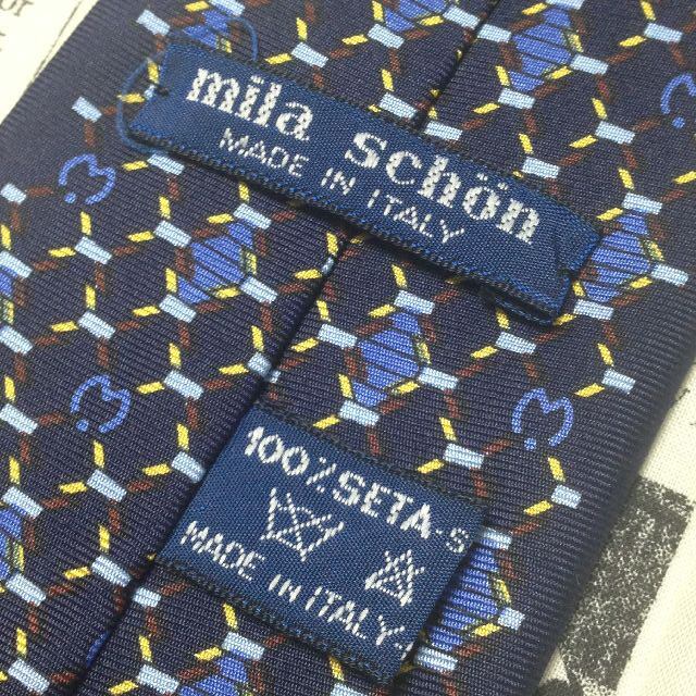 ミラショーン mila schon 微光沢 ネクタイ イタリア製 シルク100% パターン柄 濃紺系 ネイビー系 N-007442