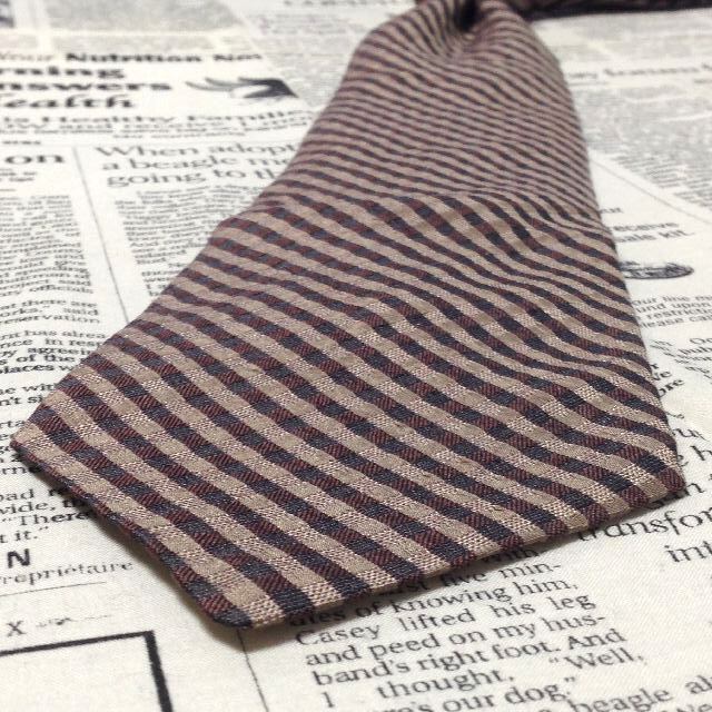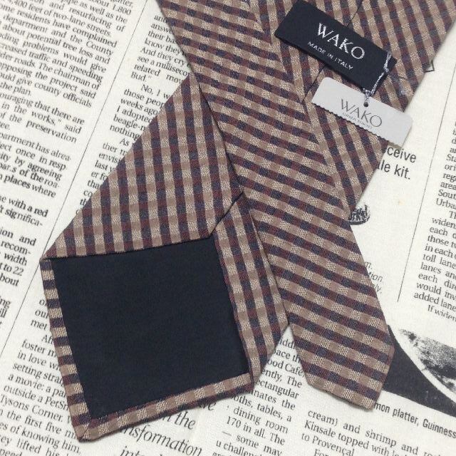 和光 WAKO 美品 新品未使用タグ付 微光沢 ネクタイ 日本製 シルク100% チェック柄 茶系 ブラウン系 O-007459