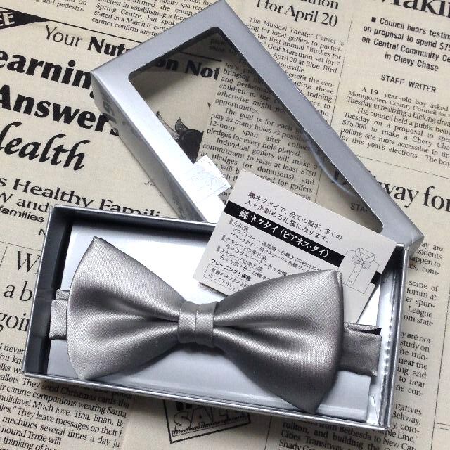 パーフェクトスーツファクトリー PSFA P.S.FA 美品 新品未使用箱付 微光沢 蝶ネクタイ ピアネス タイ シルバー系 O-007460