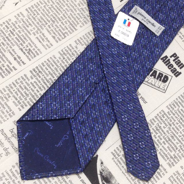 ピエールカルダン pierre cardin 美品 新品未使用タグ付 微光沢 ネクタイ シルク100% 濃紺系 ネイビー系 P-007538