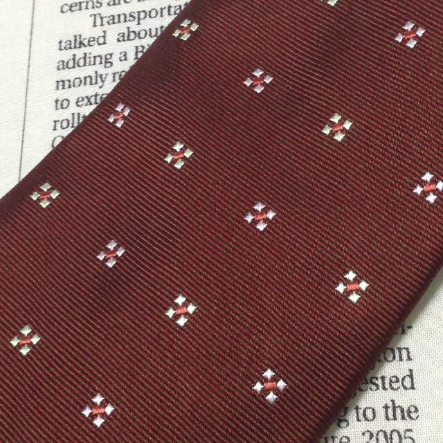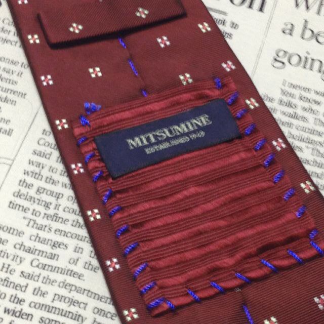 ミツミネ Mitsumine 良品 微光沢 ネクタイ シルク100% パターン柄 ワインレッド系 赤系 Q-007551