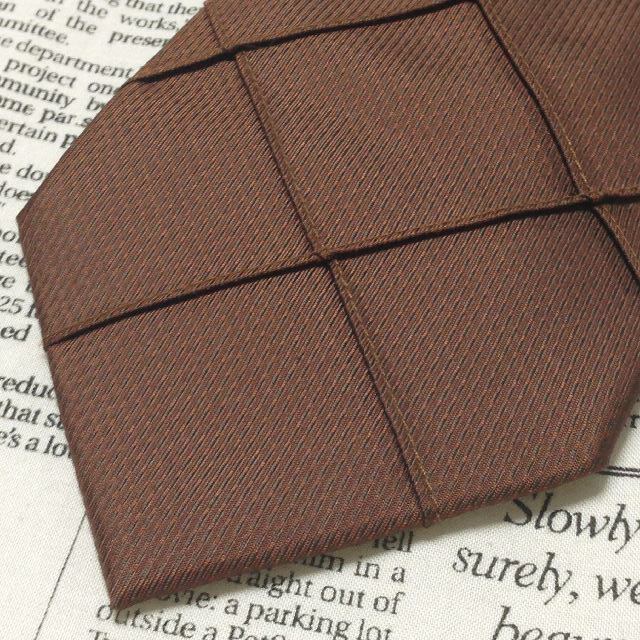 ミツミネ Mitsumine 良品 微光沢 ネクタイ シルク100% 立体的 裏地チェック柄 茶系 ブラウン系 Q-007553