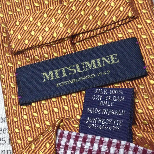 ミツミネ Mitsumine 良品 微光沢 ネクタイ 日本製 シルク100% ドット柄 裏地チェック柄 Q-007556
