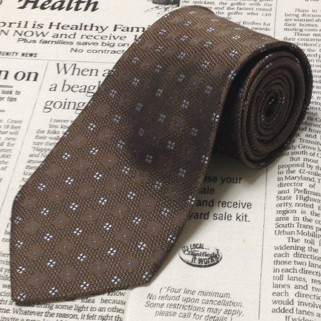 ジョージケント GEORGEKENT 菱屋 美品 微光沢 ネクタイ 日本製 シルク100% パターン柄 茶系 ブラウン系 Q-007567