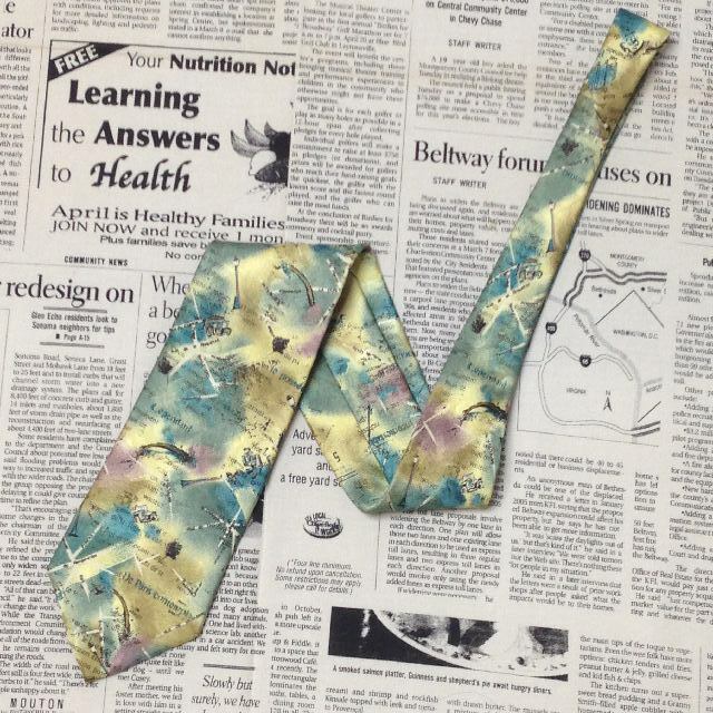エレッセ ellesse 美品 未使用品 微光沢 ネクタイ 日本製 シルク100% 総柄 英字 ミックス Q-007572