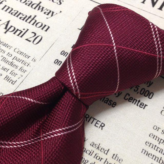 タケオキクチ TAKEO KIKUCHI TK 良品 微光沢 ネクタイ シルク100% 格子柄 ワインレッド系 赤系 N-007603