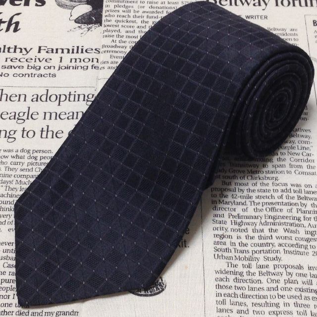 タカキュー TAKA-Q 美品 微光沢 ネクタイ 日本製 シルク100% 格子柄 黒系 ブラック系 O-007618