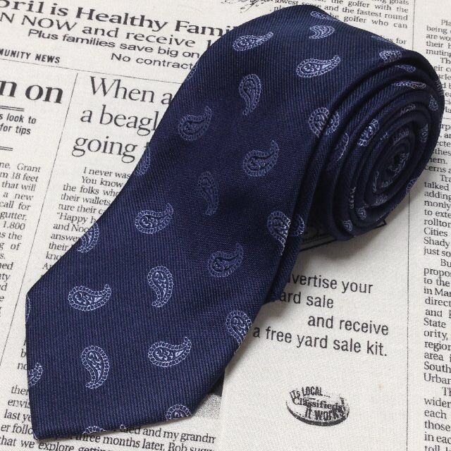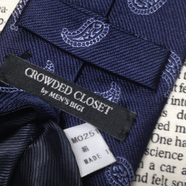 ビギ bigi メンズビギ MEN'S BIGI CROWDED CLOSET 美品 微光沢 ネクタイ ペイズリー柄 濃紺系 ネイビー系 O-007623