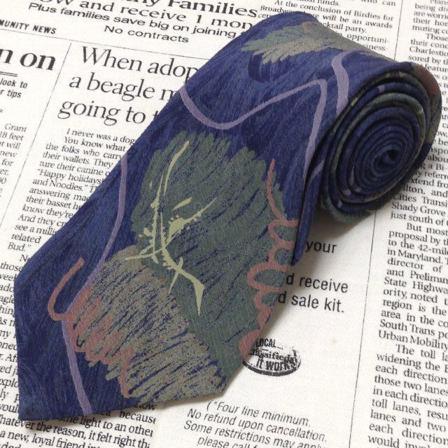 イッセイ ミヤケ ISSEY MIYAKE im 美品 未使用品 微光沢 ネクタイ シルク100% 総柄 濃紺系 ネイビー系 P-007663