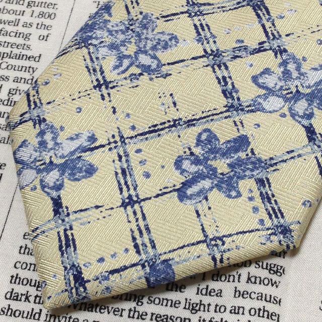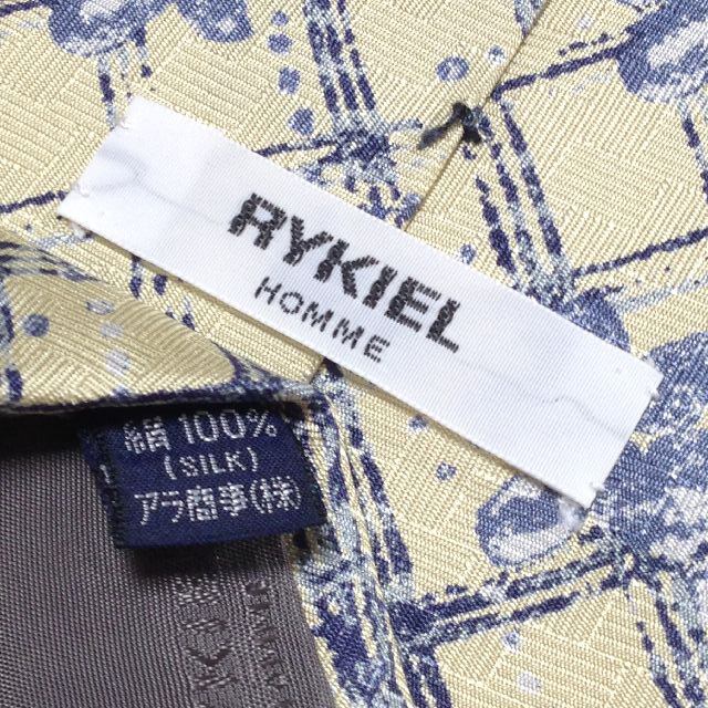 リキエル オム RYKIEL HOMME 美品 微光沢 ネクタイ シルク100% 小花柄 黄系 イエロー系 P-007677