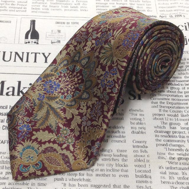 ランバン LANVIN 微光沢 ネクタイ フランス製 シルク100% ペイズリー調 花柄 植物柄 ミックス P-007684