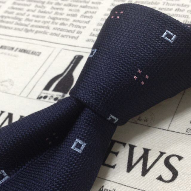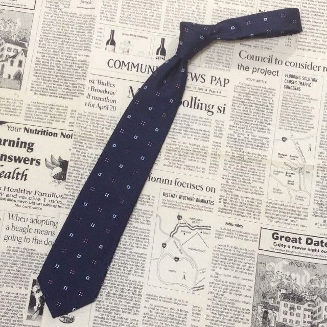 ドレイクス DRAKE'S 良品 微光沢 ネクタイ 日本製 シルク100% パターン柄 濃紺系 ネイビー系 P-007686