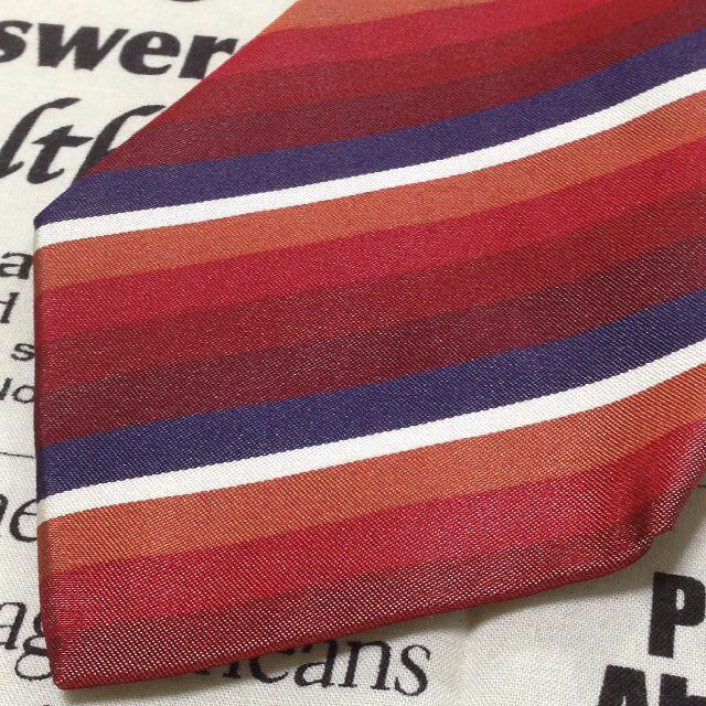 EGON VON FURSTENBERG 美品 新品未使用タグ付 微光沢 ネクタイ 斜めストライプ レジメンタル レッド系 赤系 P-007687