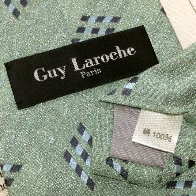 ギラロッシュ Guy Laroche 美品 微光沢 ネクタイ シルク100% パターン柄 ミント系 Q-007690