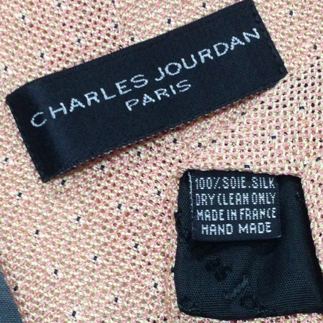 シャルルジョルダン CHARLES JOURDAN 良品 微光沢 ネクタイ シルク100% ドット柄 サーモンピンク系 Q-007712