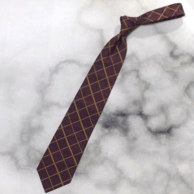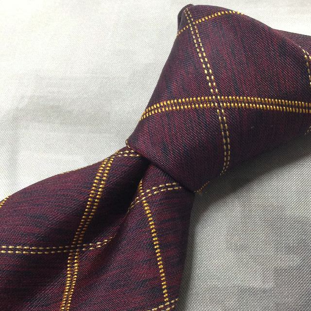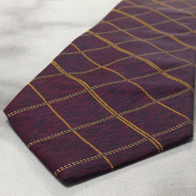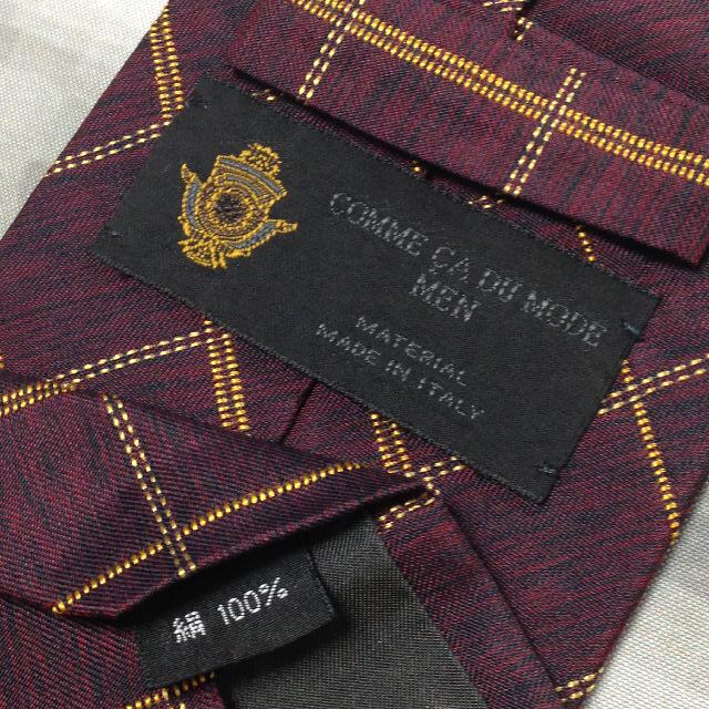 コム サ デ モード メン COMME CA DU MODE MEN 美品 微光沢 ネクタイ 格子柄 ワインレッド系 赤系 Q-007718