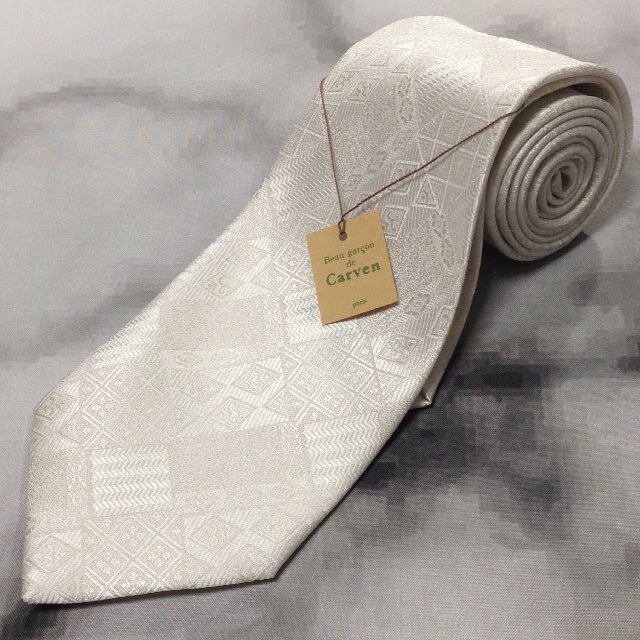 カルヴェン カルバン カルベン CARVEN 新品未使用タグ付 微光沢 ネクタイ 礼装 冠婚葬祭 白系 ホワイト系 Q-007726