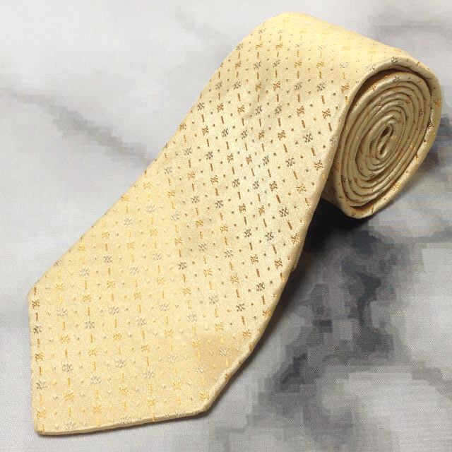 セリーヌ CELINE 良品 微光沢 ネクタイ イタリア製 シルク100% パターン柄 黄系 イエロー系 R-007764