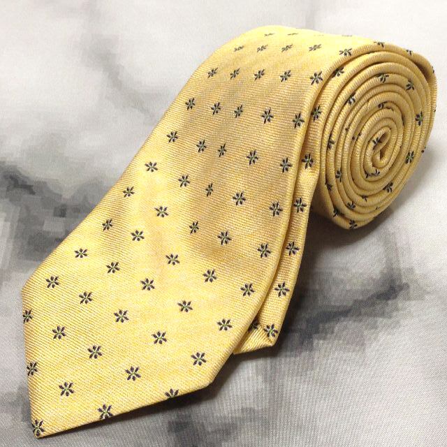 トロージャン trojan 良品 微光沢 ネクタイ イタリア製 シルク100% パターン柄 黄系 イエロー系 R-007768