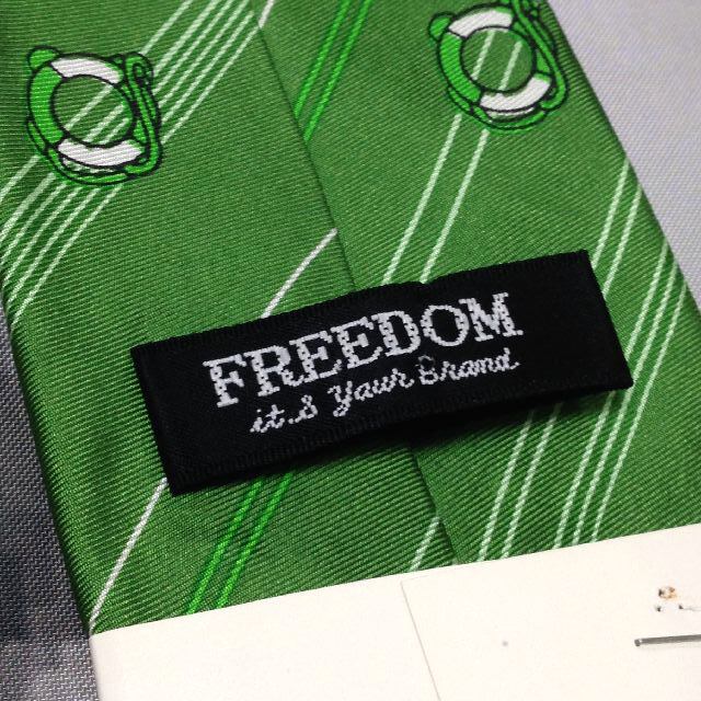 FREEDOM 美品 新古品未使用帯(タグ)付 微光沢 ネクタイ 斜めストライプ レジメンタル 緑系 グリーン系 R-007772