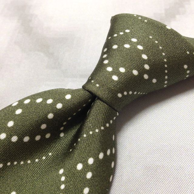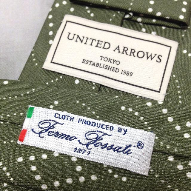 ユナイテッドアローズ UNITED ARROWS 美品 微光沢 ネクタイ 日本製 シルク100% ドット柄 緑系 グリーン系 R-007787