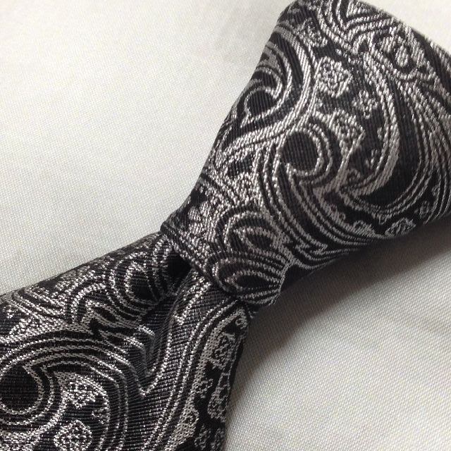 エトロ ETRO 美品 微光沢 ネクタイ イタリア製 ペイズリー柄 シルバー系 ブラック系 黒系 R-007794