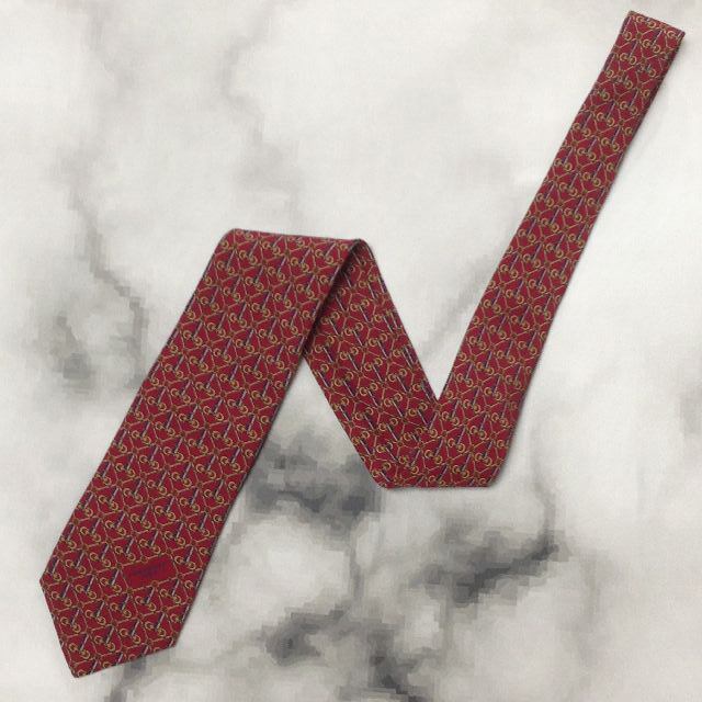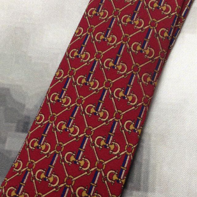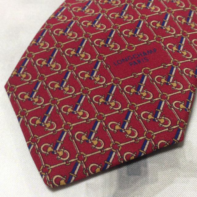 ロンシャン Longchamp 微光沢 ネクタイ イタリア製 シルク100% パターン柄 ワインレッド系 赤系 R-007799