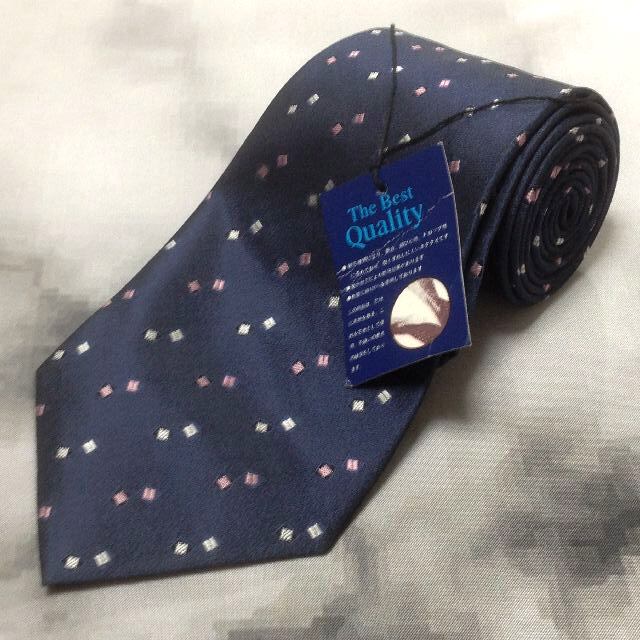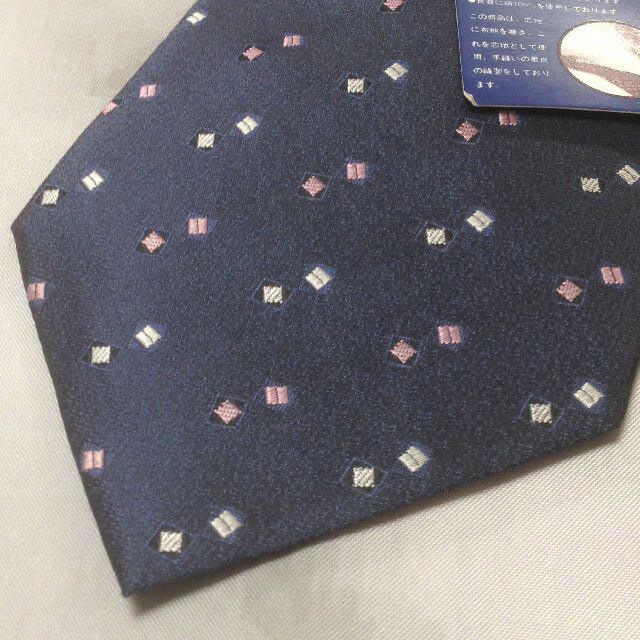BORDEAUX 美品 新品未使用タグ付 微光沢 ネクタイ シルク100% ブロックドット柄 濃紺系 ネイビー系 S-007814