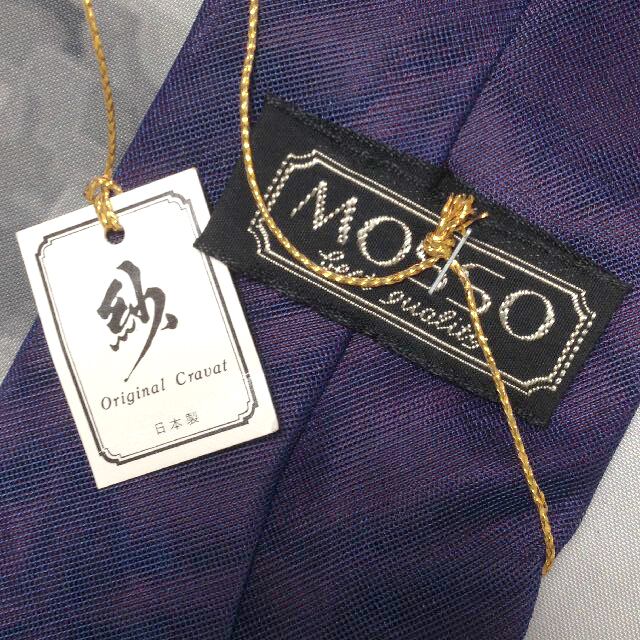 MOSSO 紗 美品 新品未使用タグ付 微光沢 ネクタイ ポリエステル100% パターン柄 濃紺系 ネイビー系 S-007818