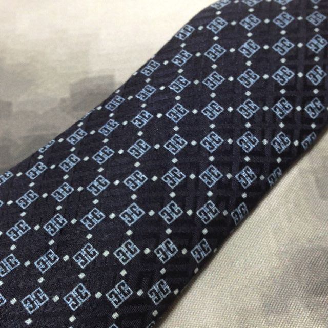 ジバンシイ GIVENCHY 微光沢 ネクタイ イタリア製 シルク100% パターン柄 濃紺系 ネイビー系 S-007836