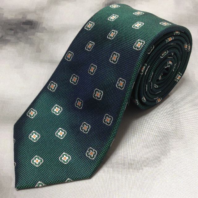 ユキトリイ YUKI TORII 美品 未使用品 微光沢 ネクタイ シルク100% パターン柄 緑系 グリーン系 S-007842