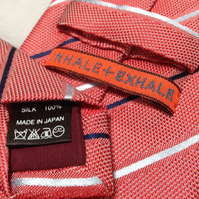 インヘイルエクスヘイル INHALE EXHALE 美品 未使用品 微光沢 ネクタイ 斜めストライプ レッド系 赤系 S-007845