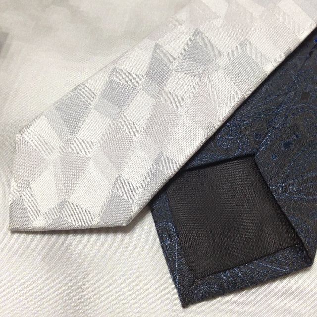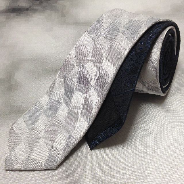 セマンティックデザイン semanticdesign 美品 微光沢 ネクタイ パターン柄 2way 切替 ナロータイ ミックス S-007846