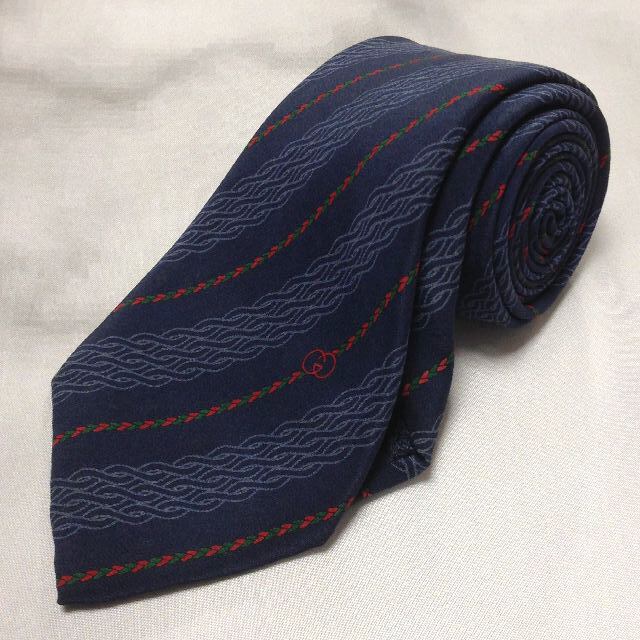 グッチ GUCCI 微光沢 ネクタイ イタリア製 シルク100% パターン柄 濃紺系 ネイビー系 S-007847