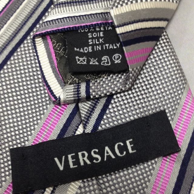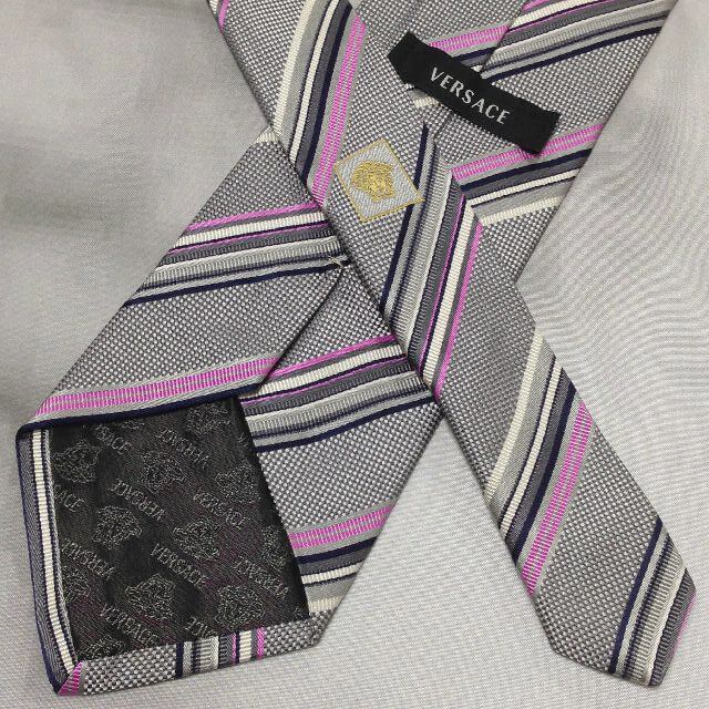 ヴェルサーチ VERSACE 微光沢 ネクタイ イタリア製 シルク100% 斜めストライプ レジメンタル ミックス S-007849
